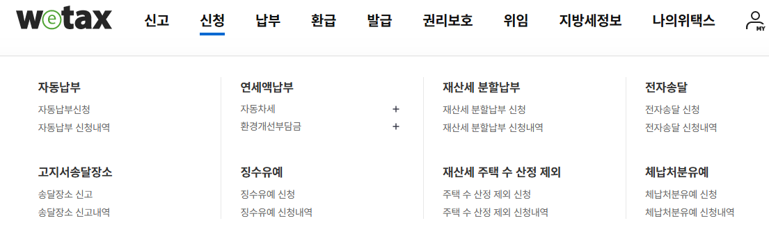 | 위택스 지방세 납부 | 재산세, 주민세, 자동차세 등 전자납부 가능 |
