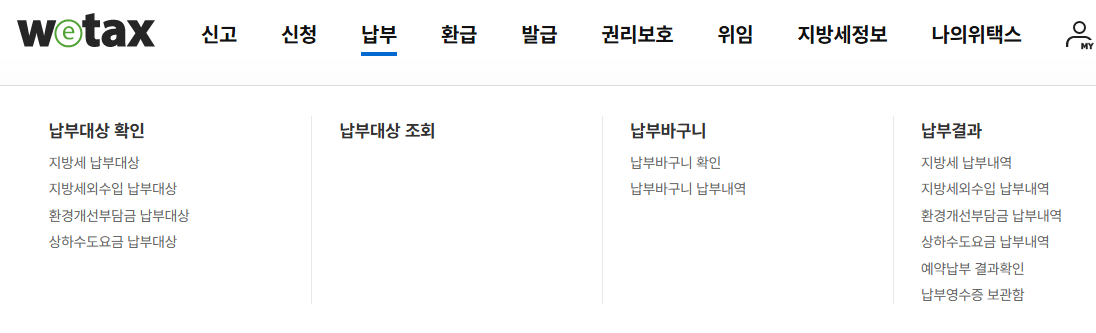 정부의 통합 세금 납부 플랫폼인 ‘위택스(Wetax)’에서 온라인으로 해결할 수 있어요.